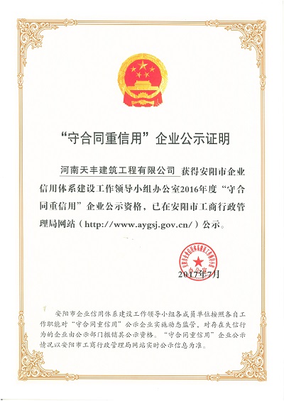 2016年度安阳市守合同