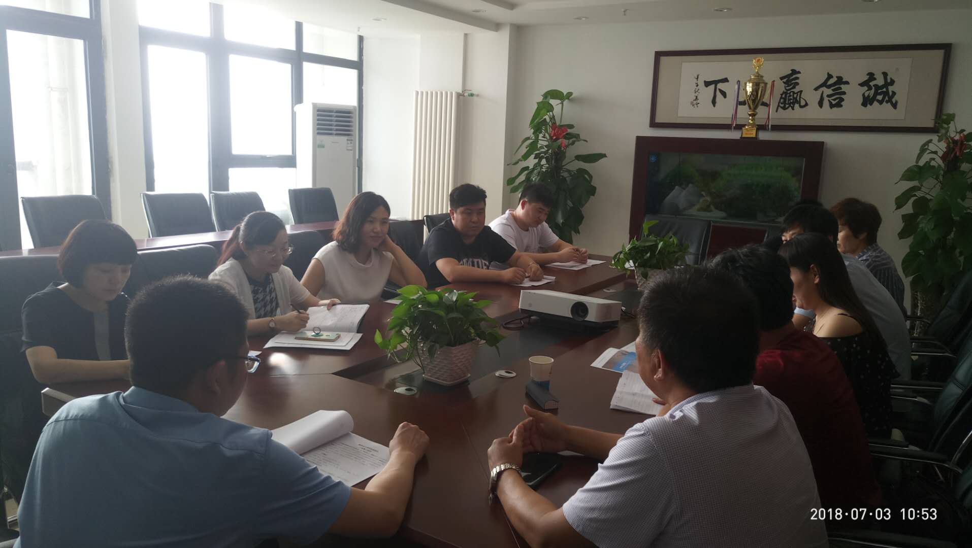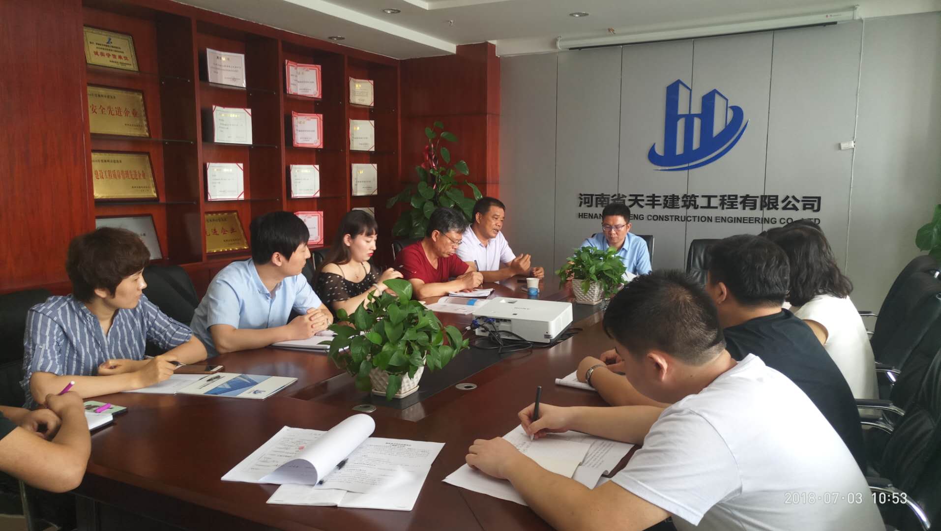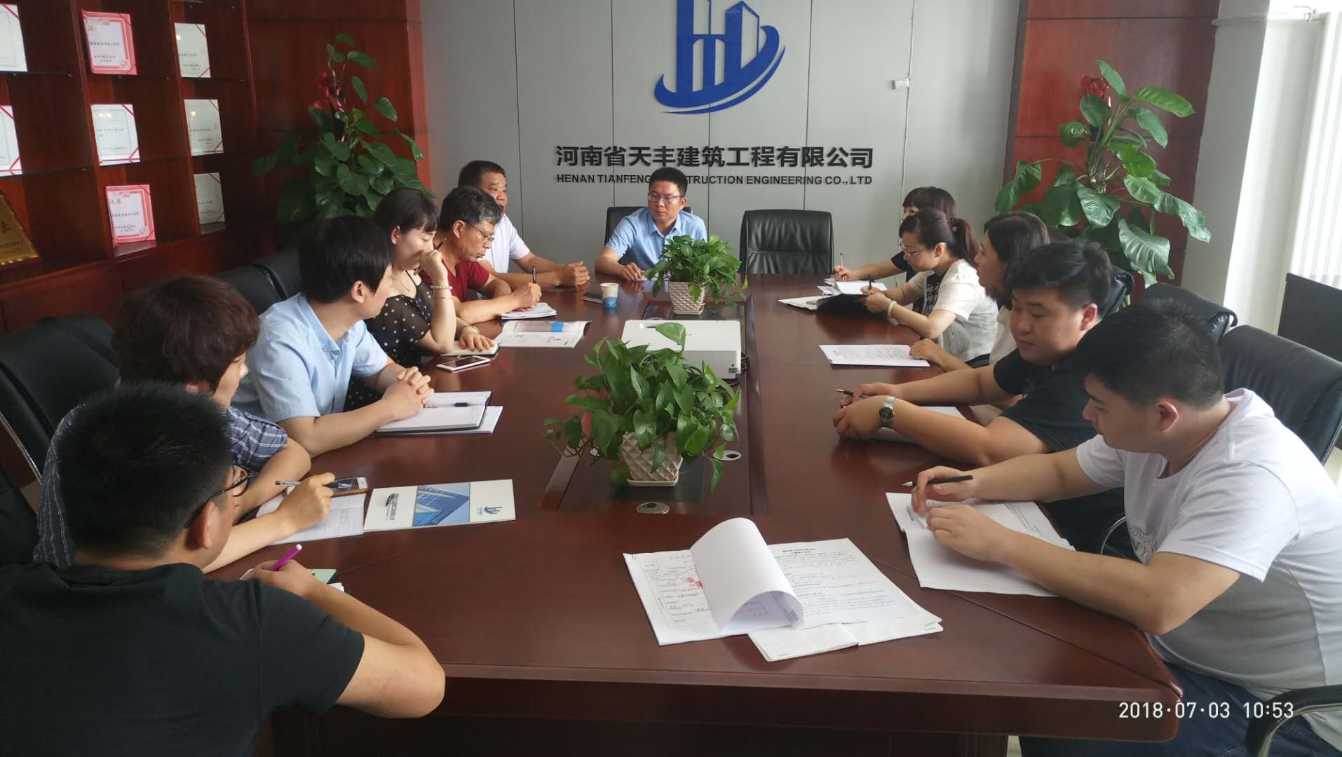 7月3日,在公司会议室召开了鹿邑县大宋村改造项目约谈会,参加本次会议的有董事长王总、经营副总刘总和公司各职能部门及项目负责人。会上强调了安全生产、文明施工的高标准要求,各部门负责人也对公司相关规章制度作出宣贯。